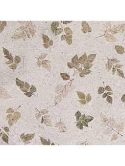Mulberrypapier met bladeren afdruk Groen, scheprand, circa 50x70cm